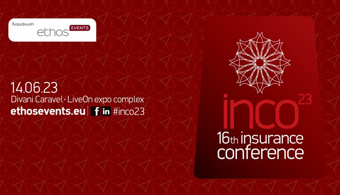 Το 16th Insurance Conference #inco23, με τίτλο «H νέα εποχή συνεργασίας Ιδιωτικής Ασφάλισης – Κράτους» διοργανώθηκε στις 14 Ιουνίου 2023, από την ethosEVENTS σε συνεργασία με το οικονομικό και επιχειρηματικό portal banks.com.gr και το ασφαλιστικό περιοδικό Insurance World και το portal insuranceworld.gr. Η συμμετοχή στo συνέδριο ήταν εφικτή με φυσική παρουσία στο ξενοδοχείο Divani Caravel, και online μέσα από το LiveOn Expo Complex, το καινοτόμο 3D εκθεσιακό και συνεδριακό κέντρο της LiveOn.